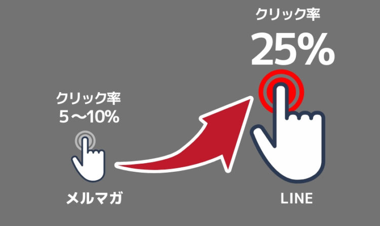 【メリット4】 LINE公式アカウントのクリック率はメルマガの5倍!